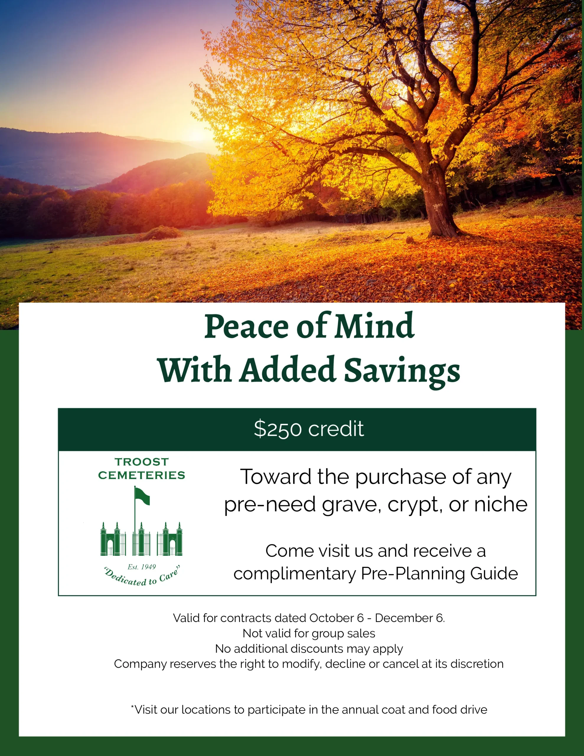 Families who need to make immediate burial arrangements should begin by completing our intake form. After submitting the form, a customer service representative will be in contact with you to make arrangements. Families may also email us at arlingtonelmlawn@troostcems.com or call us at (630) 833-9696.